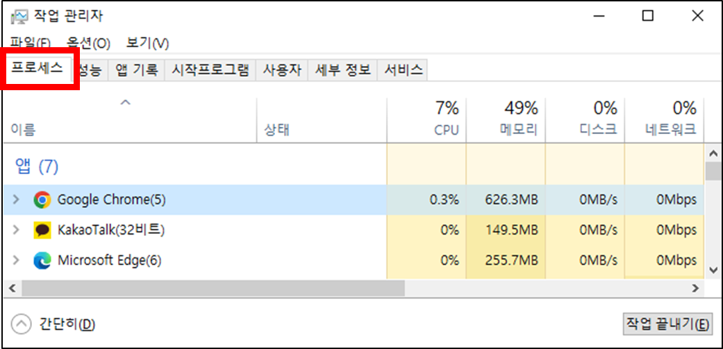 그동안 멈춘 프로그램의 강제 종료를 위해 사용하던 작업 관리자 창을 켜보면 (ctrl+alt+del 또는 ctrl+shift+esc) 실제로 "프로세스"라고 적혀있는걸 확인할 수 있다.