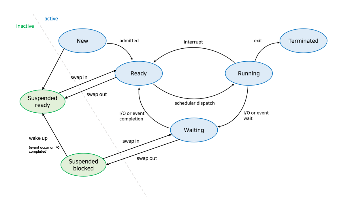 - Suspended Ready : 메모리 부족으로 일시 중단된 상태.