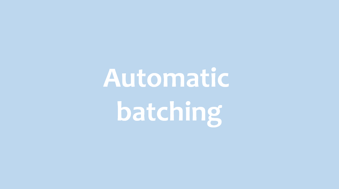 리액트는 state 값이 변경되었을 때마다 해당 컴포넌트를 리랜더링하는데, 기본적으로 setState()는 리액트가 새 랜더 패스를 시작하고 이를 동기적으로 실행하고 반환하도록 한다. 이때 랜더링을 한 번에 하나씩 처리하는 것이 아닌 여러 setState() 호출 결과를 한번에 실행하여 최적화를 자동으로 적용하기도 하는데 이를 '랜더링 일괄처리(batching)'라고 말한다. batching 작업을 자동으로 실행함으로써 불필요한 리랜더링을 방지해준다.